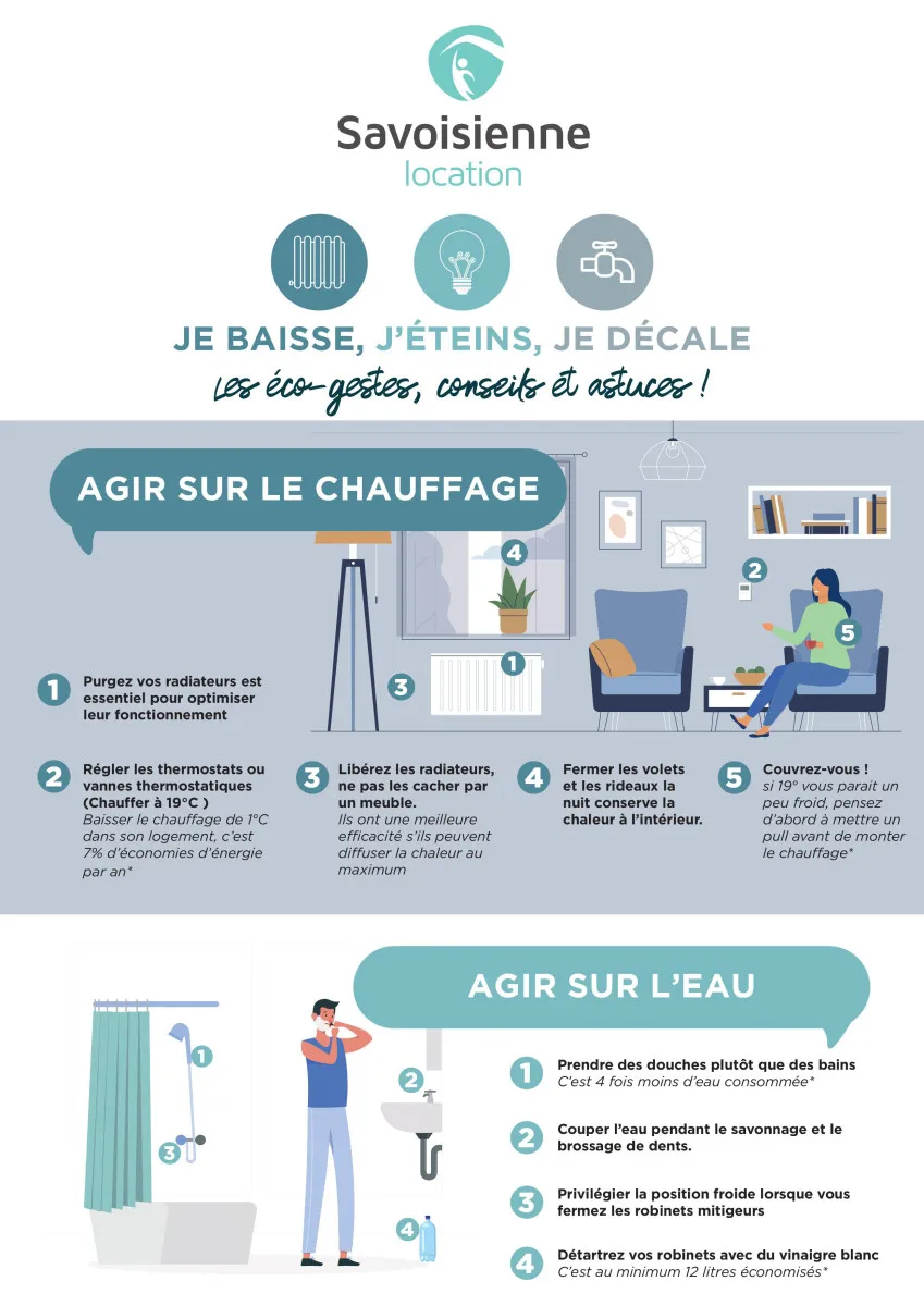 SAVOISIENNE HABITAT souhaite vous sensibiliser sur la maîtrise des consommations d’eau chaude, de chauffage et d’électricité. En effet, l’actualité nous le rappelle régulièrement, et nous le constatons sur les factures des fournisseurs : le prix des énergies est en pleine augmentation.